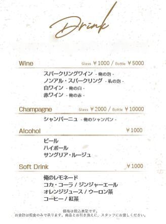 ドリンク代はチケット料金には含まれておりません。別途オーダーが必須となります。